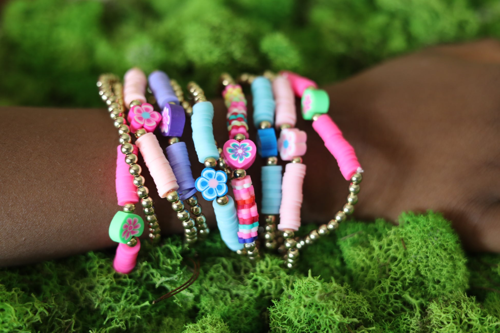 A pink flower charm on a pink cord bracelet with a pearl accent. Simple, sweet, and girly.